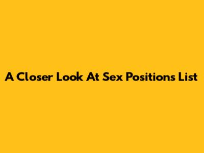 A Closer Look At Sex Positions List